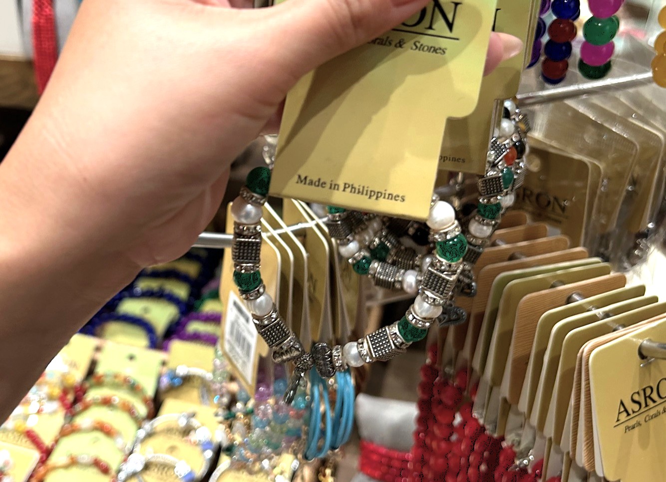 ビーズと銀細工のブレスレット、しっかりMade in the Philippinesです